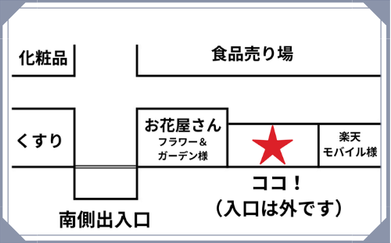 イオン小千谷店 2階 → 1階 お花屋さん横